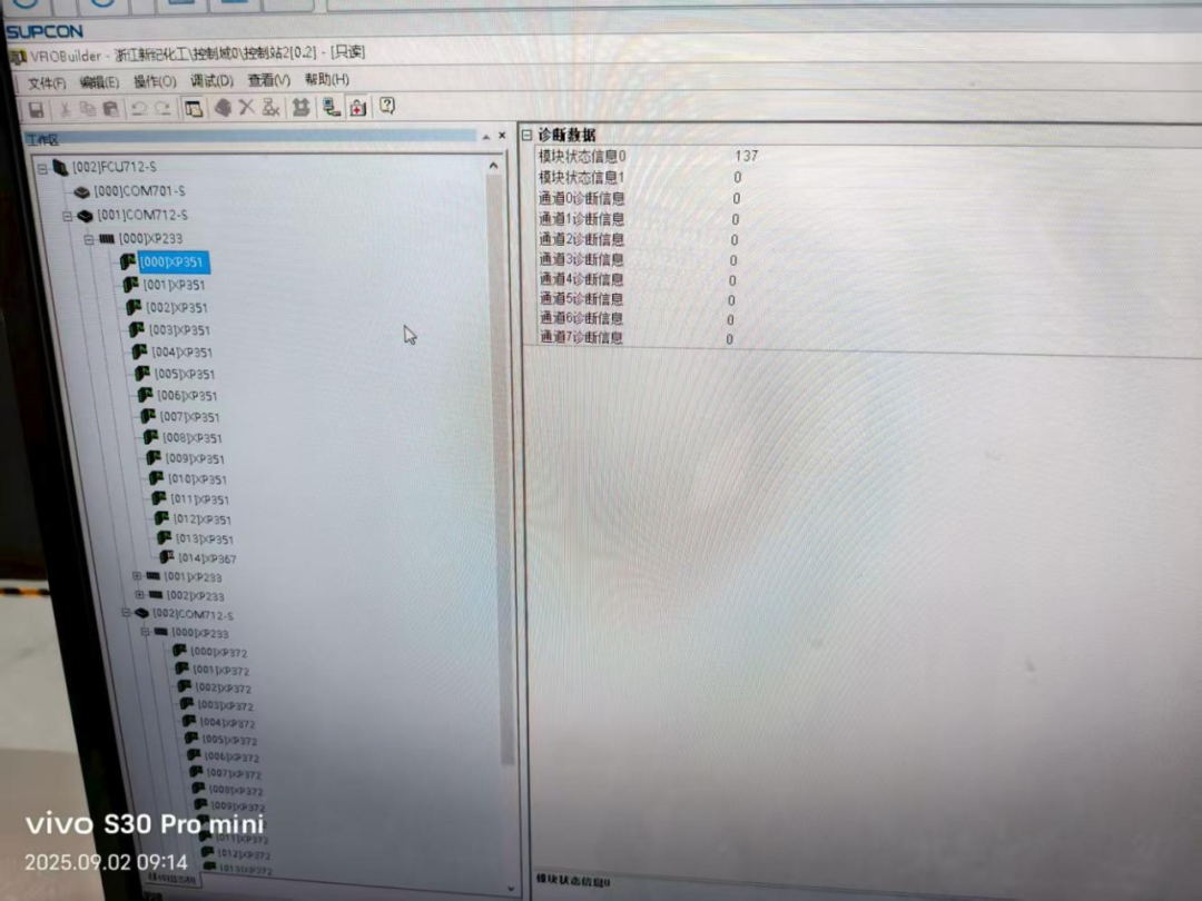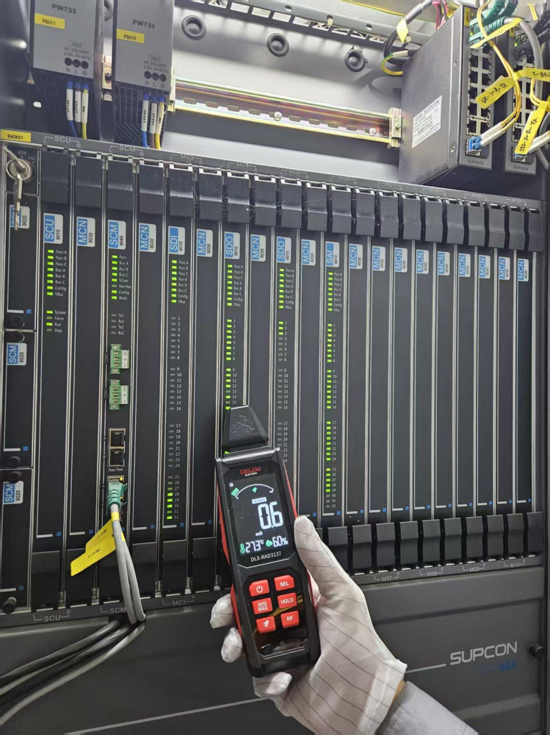 2025年9月02日-2025年9月04日為期兩天時間,昂晟團隊2名技術人員攜帶專業檢測設備,對浙江新紀DCS/SIS系統的硬件組件、軟件邏輯、通訊網絡、供電、接地以及過程站IO卡件等進行了深層次的檢測處理。與此同時,還對卡件、控制站機柜、計算機主機等進行了細致除塵。